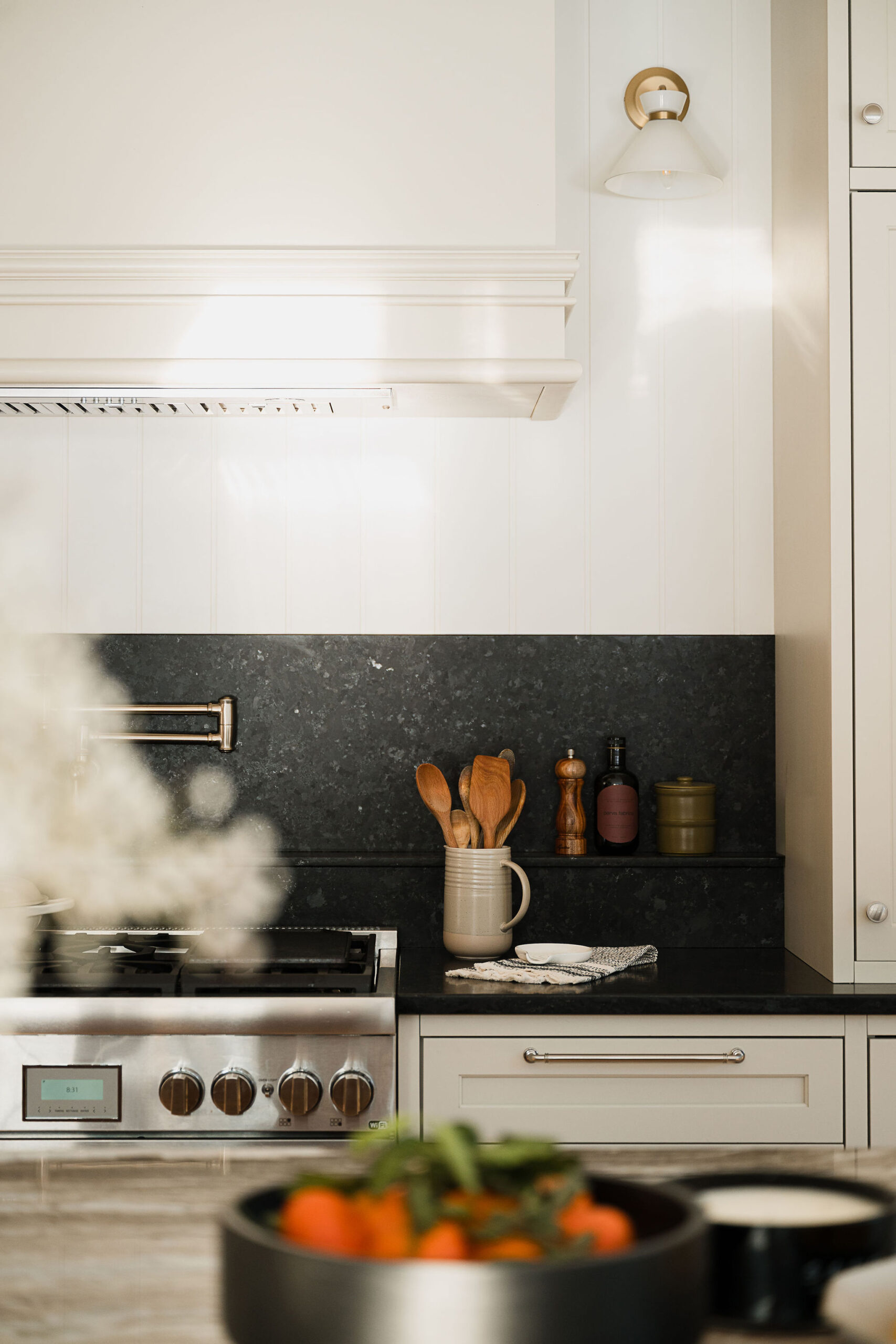 De nombreux mobiliers intégrés dessinés et réalisés en atelier par notre division Ébénisterie permettent de maximiser l’espace et d’offrir des rangements pratiques et esthétiques.