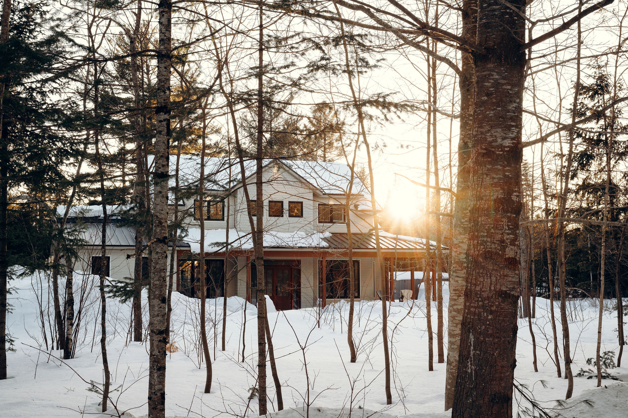Cette maison, entièrement conçue et réalisée par Cas Par Cas, a été érigée sur un terrain initialement densément boisé. Un déboisement stratégique a donc été réalisé pour permettre l’intégration harmonieuse de la maison dans ce cadre verdoyant, créant ainsi un véritable écrin naturel.