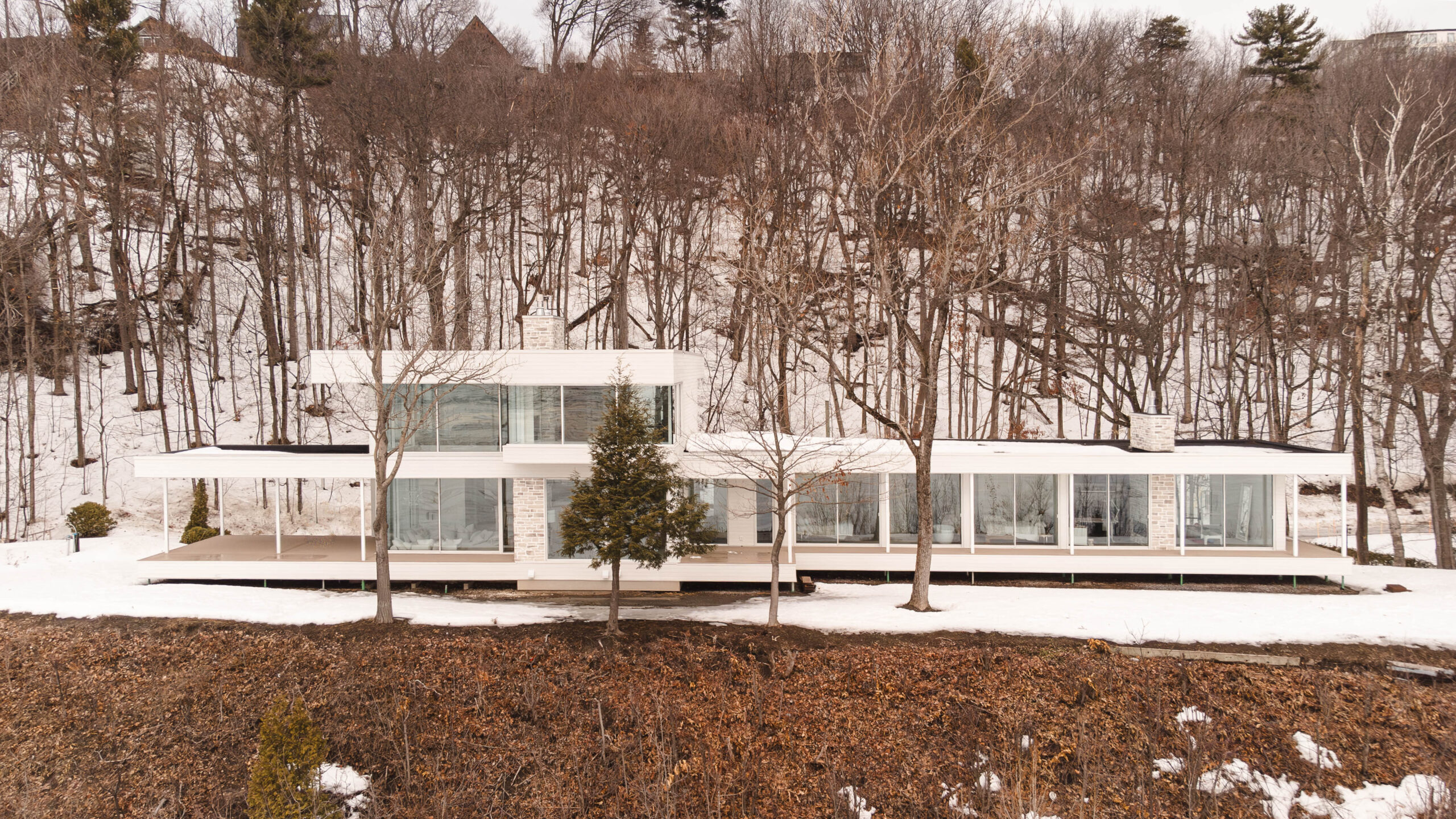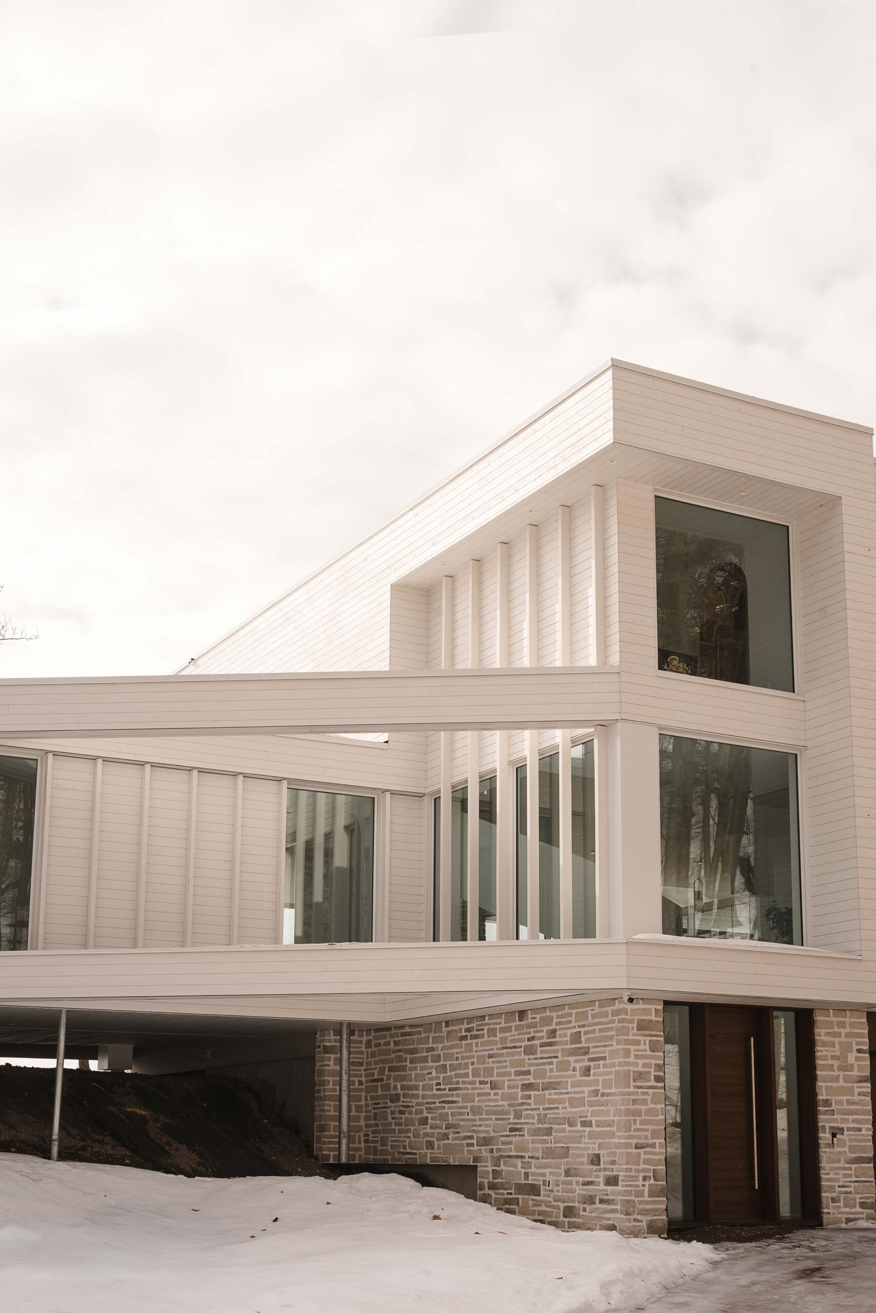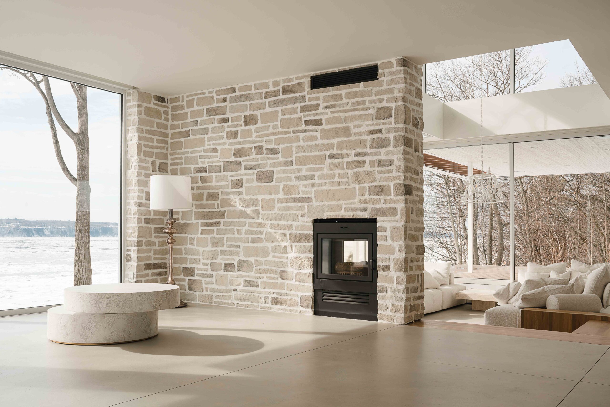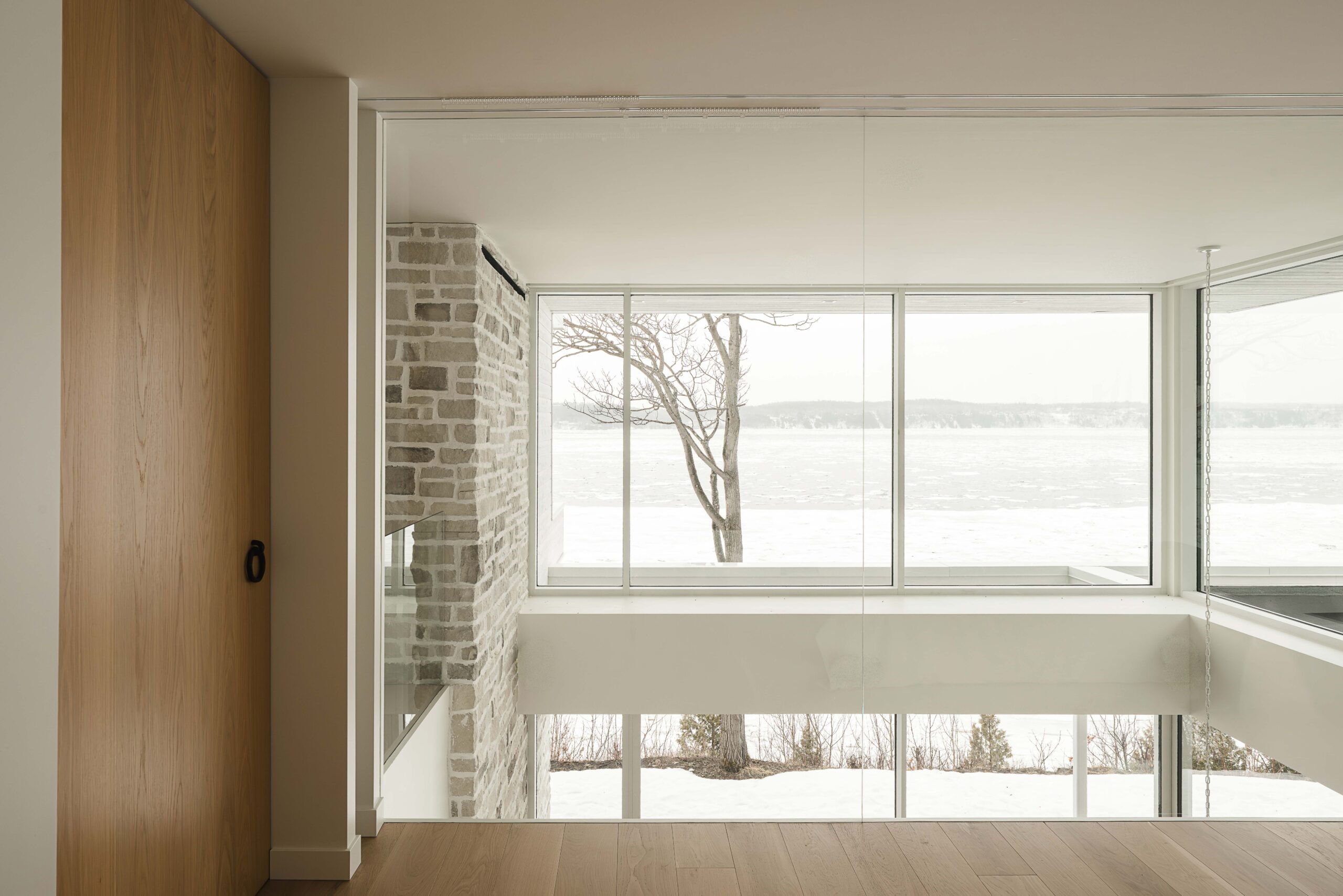 Rénovation majeure d’une résidence en bordure du fleuve à Saint-Augustin-de-Desmaures, issue de la fusion de deux propriétés adjacentes.